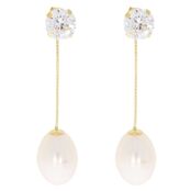 Luxxos Ohrhänger mit 2 Süßwasserzuchtperlen und 2 Zirkonia aus 375 Gelbgold